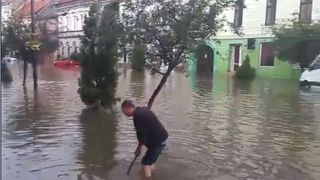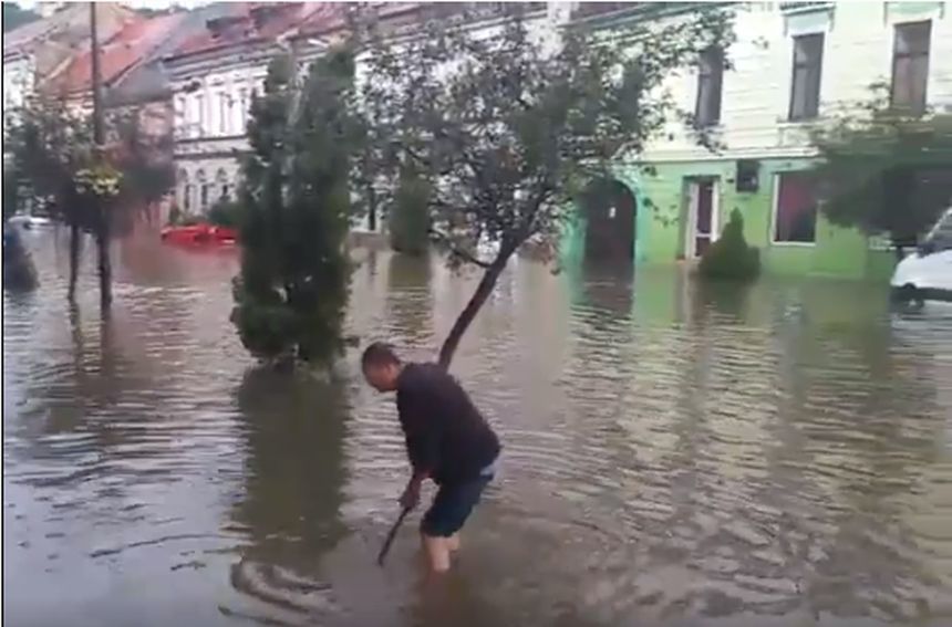 Patru strazi din centrul orasului Sighisoara au fost inundate marti dupa-amiaza, in urma unei ploi torentiale care a durat o ora.