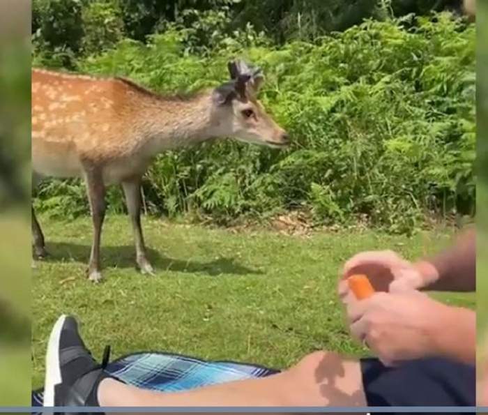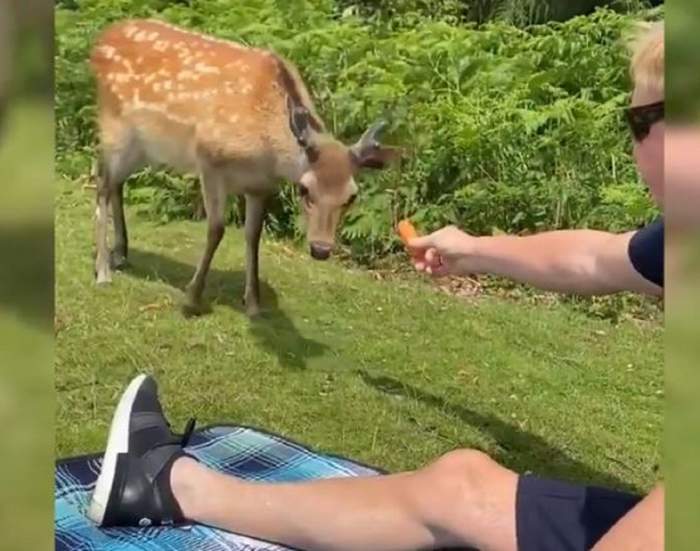 O mamă se afla la picnic alături de fii săi, când au zărit cerbul.