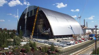 3 din 3 | O arcadă uriașă de izolare a fost pusă în urmă cu șase ani deasupra zonei reactorului nuclear care a explodat cu 35 de ani în urmă la Cernobîl, Ucraina.