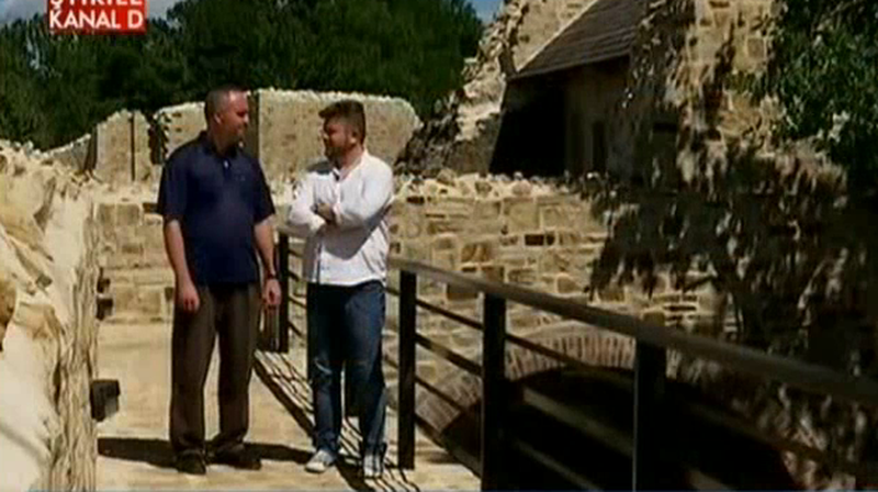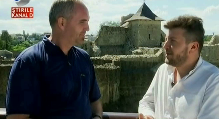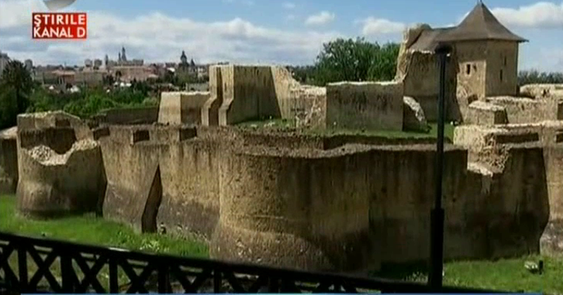 "Se vede capela. Turla capelei. Si, inteleg, chiar acolo era si camera domnitorului. Da, in zona, pe latura de Est. Capela era pictata la vremea respectiva. Avem urme vagi de pictura in locul unde ar trebui, la ora actuala, sa fie altarul. Iar camera domnitorului. Este alaturi de… perete-n perete cu capela. S-au pastrat macar o parte din zidurile vechi? Prea putin. Prea putin. Prea putin, da. Urmeaza sa fie… Mobilata cetatea, in scurt timp. Speram ca pana-n toamna sa fie in cetate totul mobilat si sa fie o cetate primitoare pentru turistii pe care-i vom avea de-acum incolo. Cate turnuri? La interior, cetatea are 8 turnuri, la exterior, 12 bastioane. Si se-ntindea pe o suprafata de…? Aproape 7 mii de metri patrati. 7 mii de metri patrati. Cum am vazut deja afara, cu canalul din jurul cetatii, care… Din jurul cetatii, care niciodata n-a fost plin cu apa. Niciodata n-a fost plin cu apa si cele doua podete. Poate cu totul, in ansamblul ei, in vremea voievodului Stefan cel Mare a trait perioada cea mai infloritoare? Cea mai infloritoare, din instoria Moldovei. 47 de ani a domnit Stefan cel Mare.