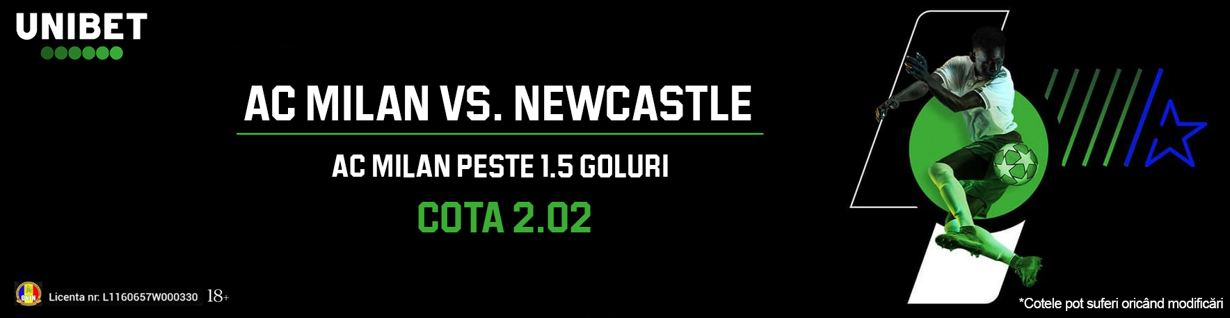 Defensiva lui Newcastle va avea de furcă, în condițiile în care echipa oricum nu este la un nivel ridicat. Iar tracul debutului în Champions League s-ar putea simți și el pentru englezi. Acesta este și motivul pentru care poți să mizezi la Unibet că AC Milan va marca Peste 1.5 goluri, la cota 2.02. Dacă ne uităm pe cotele 1X2, se poate sesiza un echilibru: 2.65 au ambele echipe la victorie, iar egalul are cota 3.65.
