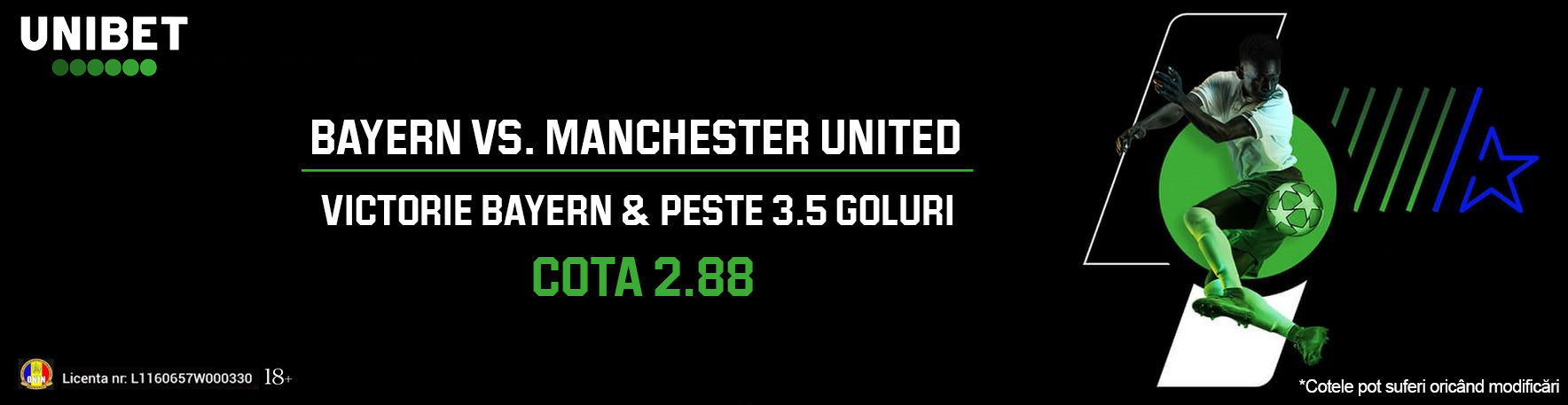 Brighton.Bayern a pierdut printre degete victoria cu Leverkusen în ultimul minut, însă per total a jucat mai bine decât a făcut-o United cu Brighton. Este echipa mai în formă și de obicei nu are probleme în faza grupelor. Din acest motiv, ia în calcul o selecție prin funcția Creare Pariu de la Unibet: Victorie Bayern și se vor marca Peste 3.5 goluri, la cota 2.88. Dacă te interesează cotele 1X2, Bayern are 1.57 la victorie, United are 5.50, iar egalul are 4.80.