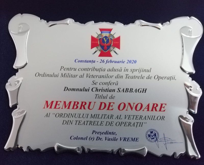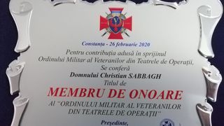 Christian Sabbagh, prezentatorul principalului jurnal informativ Kanal D din weekend, a fost desemnat „Membru de Onoare” al Ordinului Militar al Veteranilor din Teatrele de Operatii, in cadrul unei ceremonii ce a avut loc astazi, in Constanta, la sediul filialei Muzeului National Militar „Ferdinand I”.