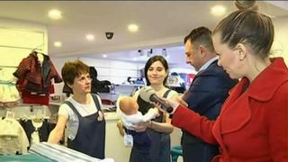 Dupa mai bine de doua ore, in care a tot ales hainute, patut, biberoane si suzete, Christian pare sa fi reusit imposibilul.