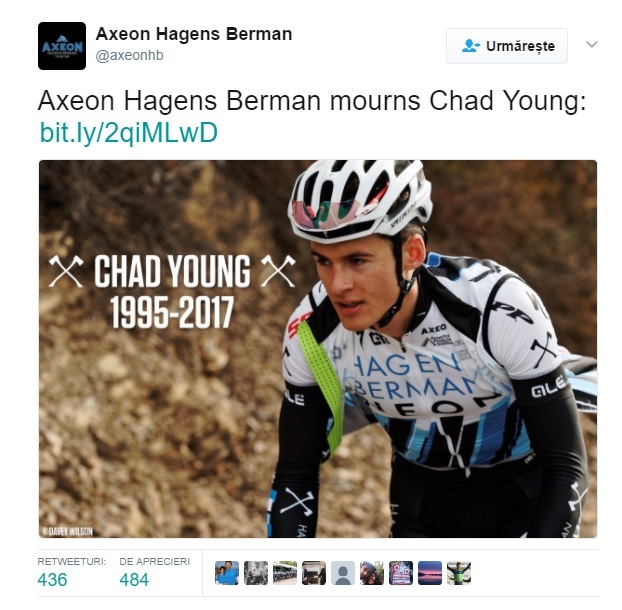 Ciclistul Chad Young, component al echipei Axeon Hagens Berman, a incetat din viata, vineri seara, la varsta de 21 de ani. Decesul a survenit la aproape o saptamana de cand sportivul a suferit un accident in timpul competitiei Tour of the Gila, din SUA, relateaza cyclingnews.com.