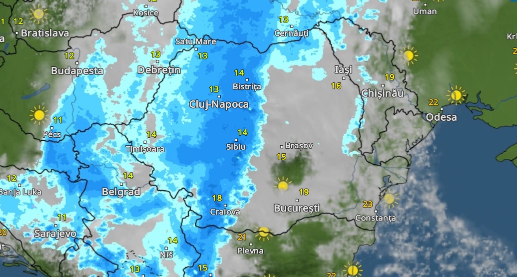 În nordul şi estul Olteniei, în cea mai mare parte a Munteniei şi sudul Transilvaniei, este Cod portocaliu de ploi abundente. Vremea se răceşte accentuat în toată ţara, iar de duminică seara este Cod galben de ninsori la munte.