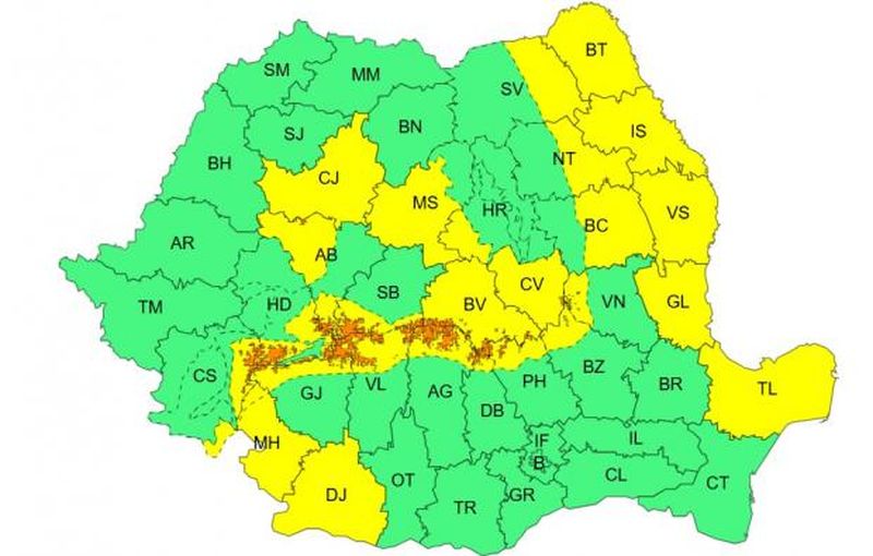ANM a emis noi coduri de vremea rea. Conform specialiștilor, cinci coduri portocalii și galbene de ploi, ninsori și viscol sunt valabile pentru mare parte din țară, în special pentru zona de munte.