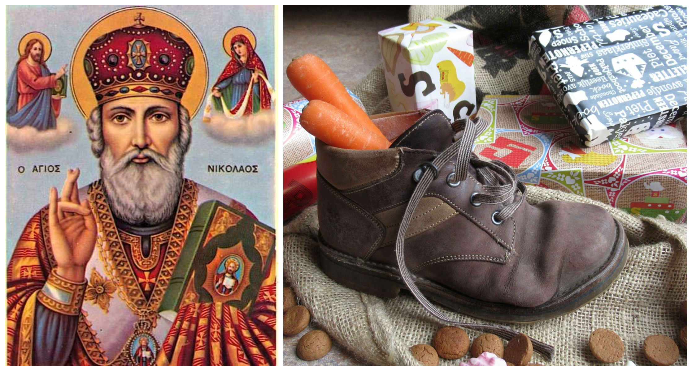 O tradiție în este legată de noaptea de 5 spre 6 decembrie, atunci când copiii care au fost cuminți tot anul primesc cadouri, dulciuri și fructe în ghetuțele pregătite. Cei care au mai făcut și năzbâtii vor primi și câte o nuielușă. Această tradiție, bineînțeles că a fost inspirată tot de o legendă, în care Sfântul, pe atunci episcop de Myra, i-a dat o palmă ereticului Arie, care îndrăznise să batjocorească biserica.