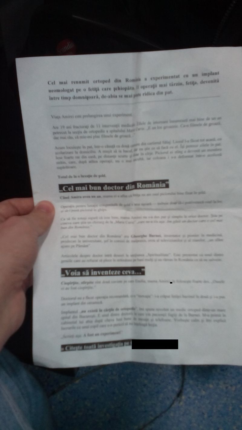 „Flyerul l-am primit in zona Eroilor, in statia de autobuz. O fata tanara le impartea. Avea in jur de 20 de ani. Nu stiu cine era sau ce legatura avea cu cazul.