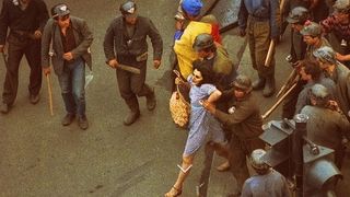 Pe 14 iunie 1990, in toiul mineriadei, cativa muncitori prind o femeie care pare rupta dintr-un „alt film”. De undeva, de pe un bloc alaturat, fotograful Andrei Iliescu surprinde in imagini scena. Fotografia face inconjurul planetei.
