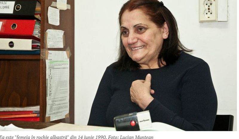 Una dintre imaginile cu mineriada din 1990 care au facut inconjurul lumii e cea in care mai multi muncitori tin imobilizata o femeie eleganta, intr-o rochie albastra. Jurnalistii de la pressone.ro au gasit-o pe aceasta femeie, la mai bine de un sfert de veac de la dramaticele evenimente din Piata Universitatii.