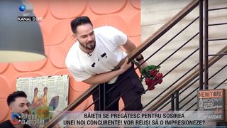 Alexandru a presărat un buchet de trandafiri pe trepte înainte de sosirea noii concurente. Cristi Marinescu a făcut ordine în sufragerie și i-a certat pe ceilalți: "Băi, nu mai faceți mizerie în casă".