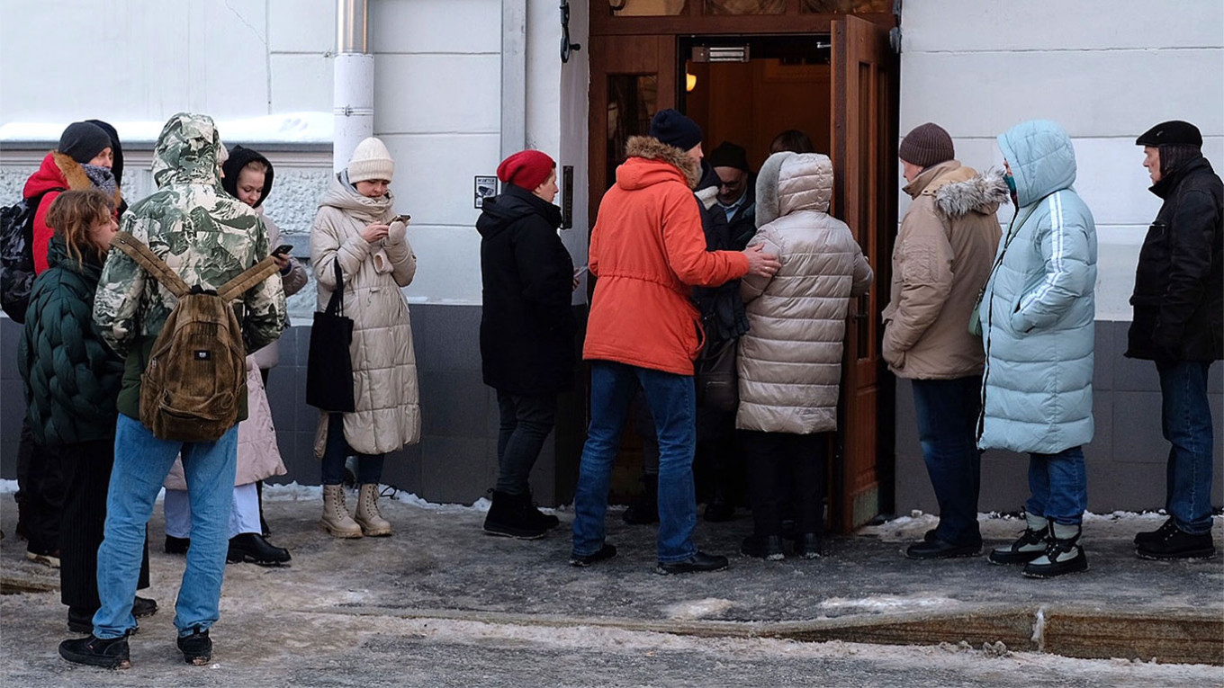 Susținătorii lui Boris Nadejdin au așteptat cuminți să-și adauge semnăturile de susținere a candidaturii oponentului lui Putin.