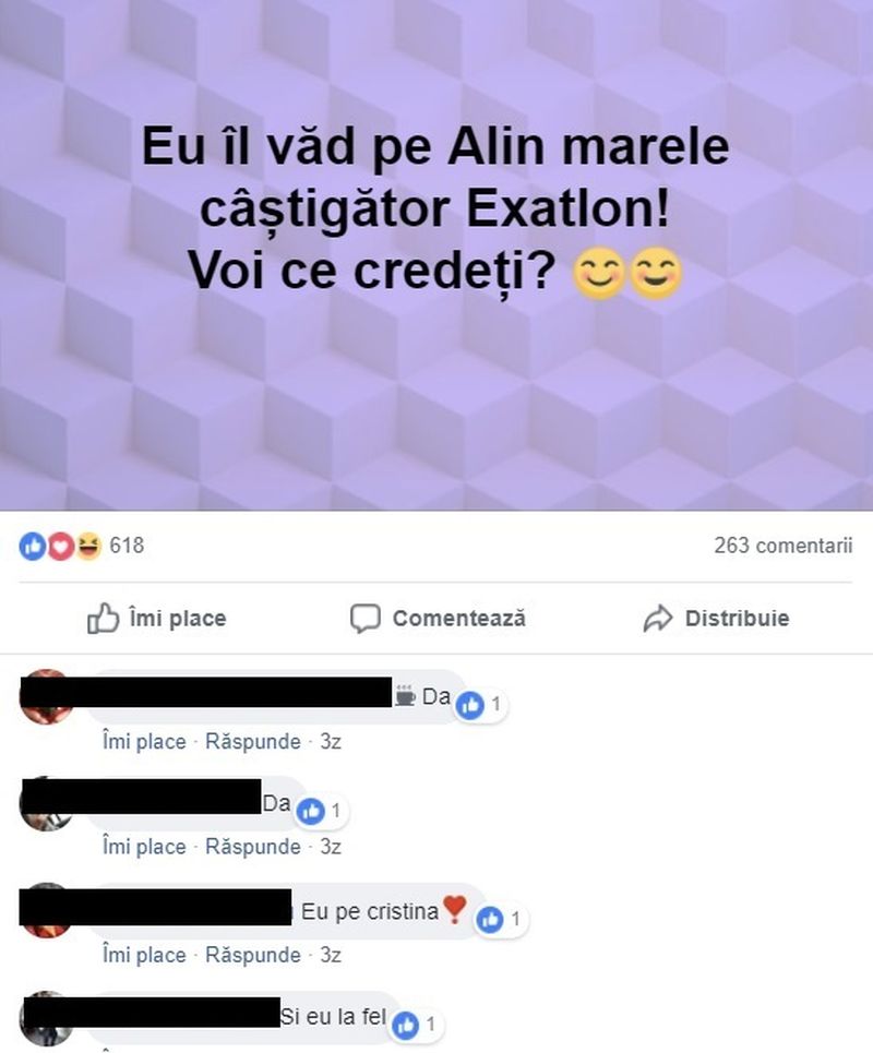 "Alin este cel mai bun concurent!", "Alin sau Iulian...unul