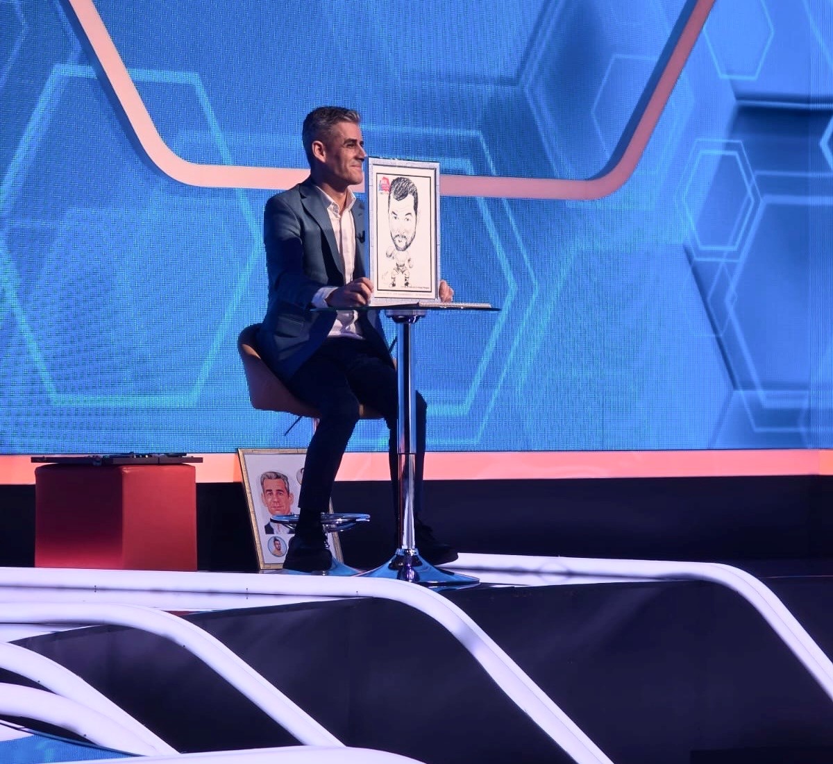El a avut misiunea de a le realiza caricaturile celor cinci concurenți aflați în platoul emisiunii – campioni de aur ai României: Ana-Maria Brânză, Maria Olaru, Marian Drăgulescu, Doina Melinte și Leonard Doroftei. Reacțiile concurenților la vederea caricaturilor au fost pe măsura talentului artistului.