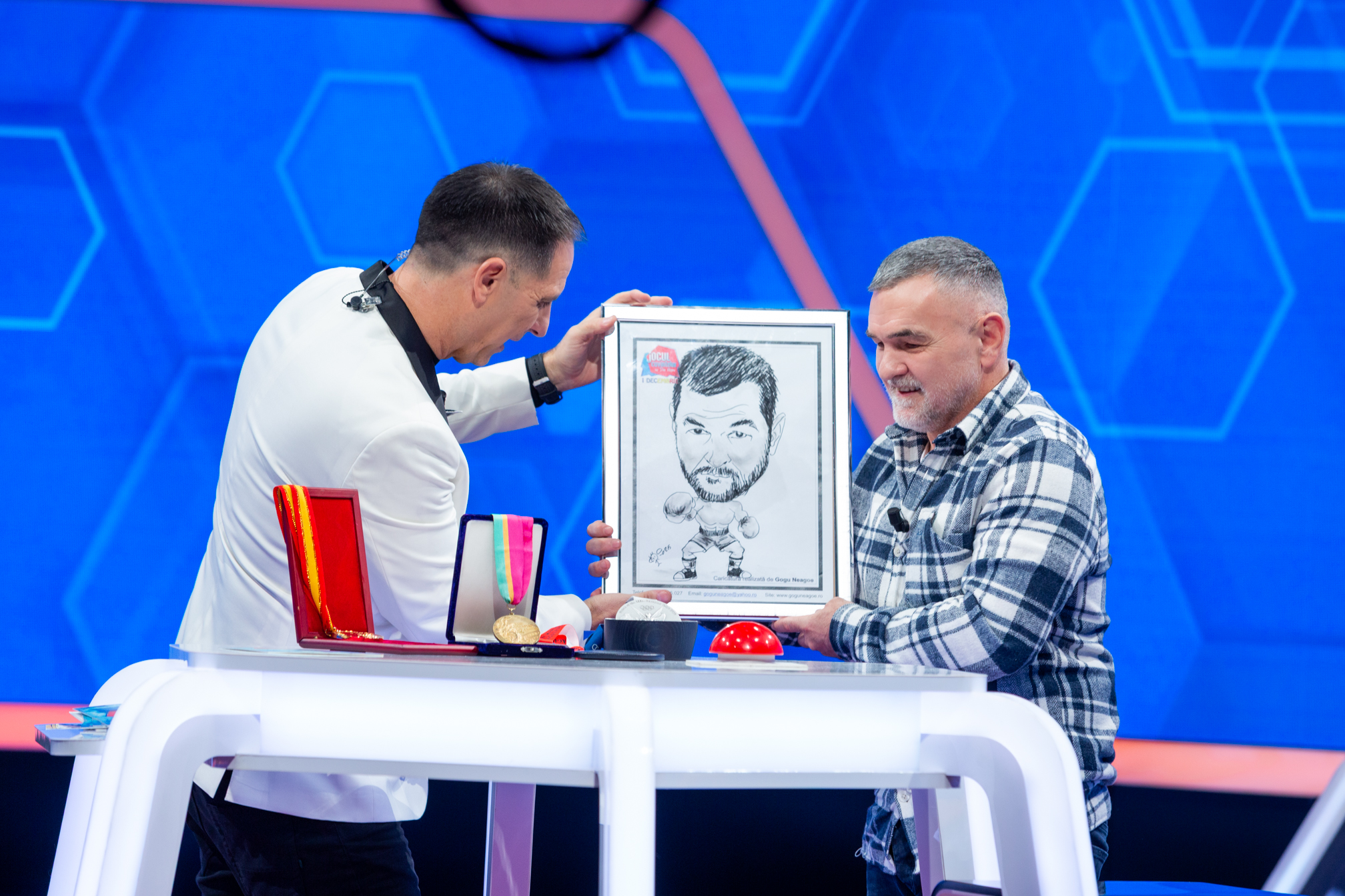 Invitat în ediția specială de 1 Decembrie „Jocul cuvintelor cu Dan Negru”, Gogu Neagoe a impresionat cu puterea sa de a surprinde esențialul chipului uman, cu umor și talent artistic inconfundabil.