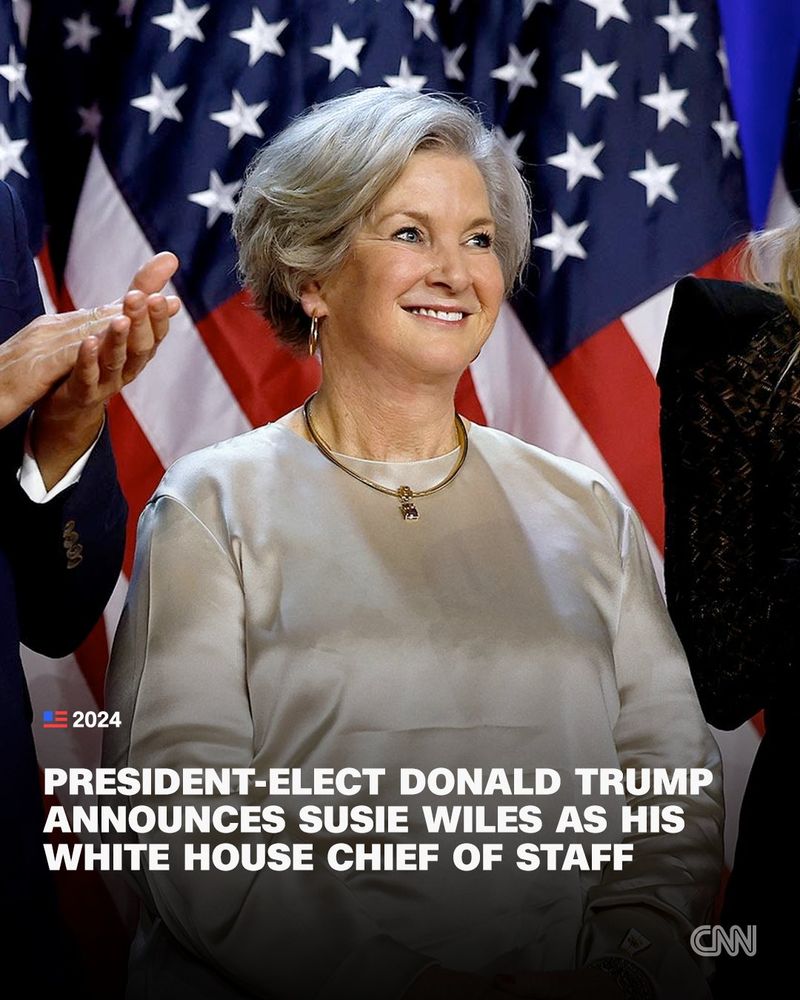 Președintele ales Donald Trump a transmis într-un comunicat că „Susie Wiles este dură, inteligentă, inovatoare şi este universal admirată şi respectată. Nu am nicio îndoială că va face ţara noastră mândră."