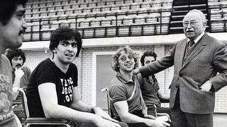3 din 4 | În centrul abordării lui Guttmann a fost introducerea sportului în regimul de reabilitare, care a evoluat rapid într-un concurs sportiv pentru scaune cu rotile.