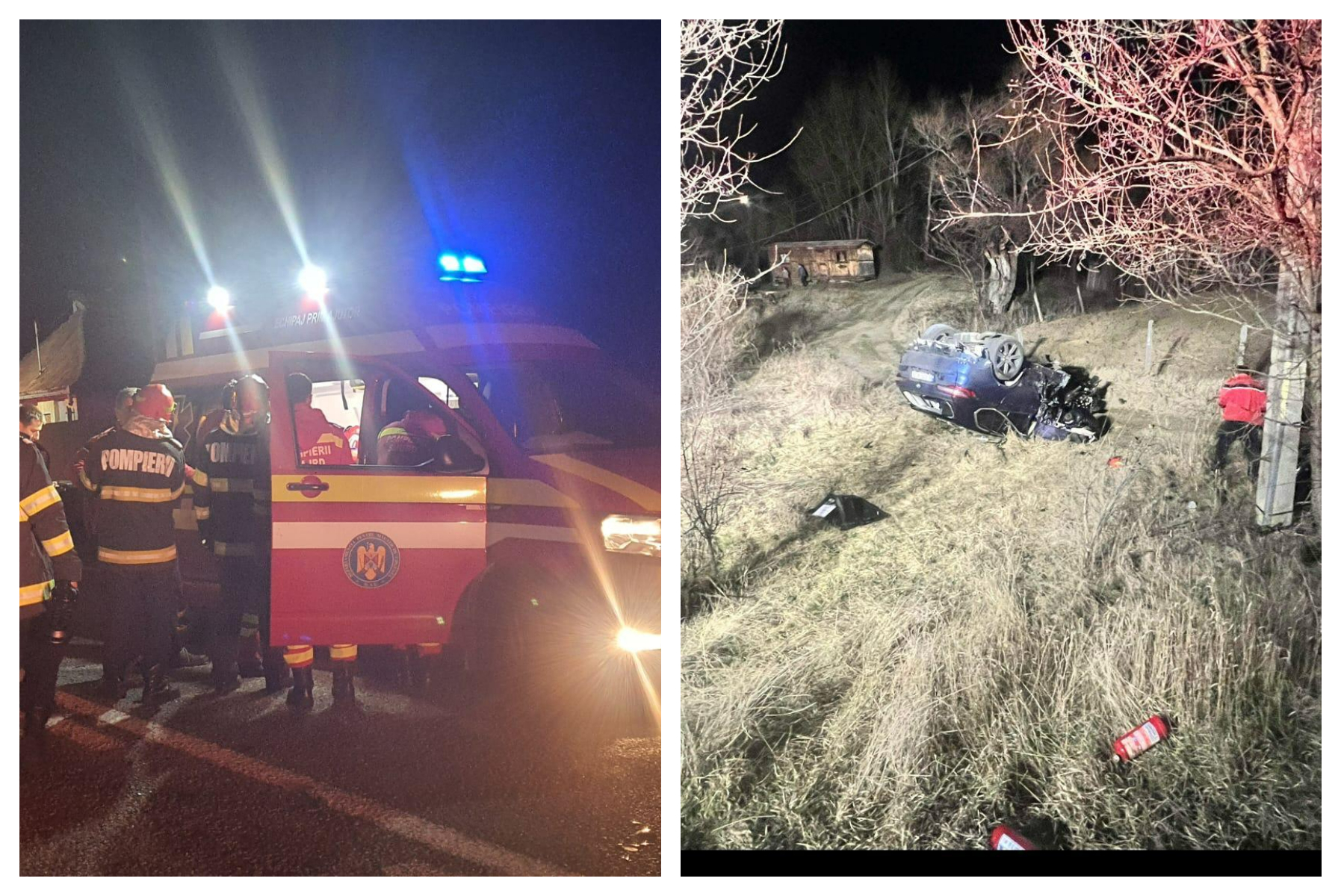 Tânărul a rămas încarcerat între fiarele contorsionate ale mașinii sale care s-a răsturnat într-un şanţ.