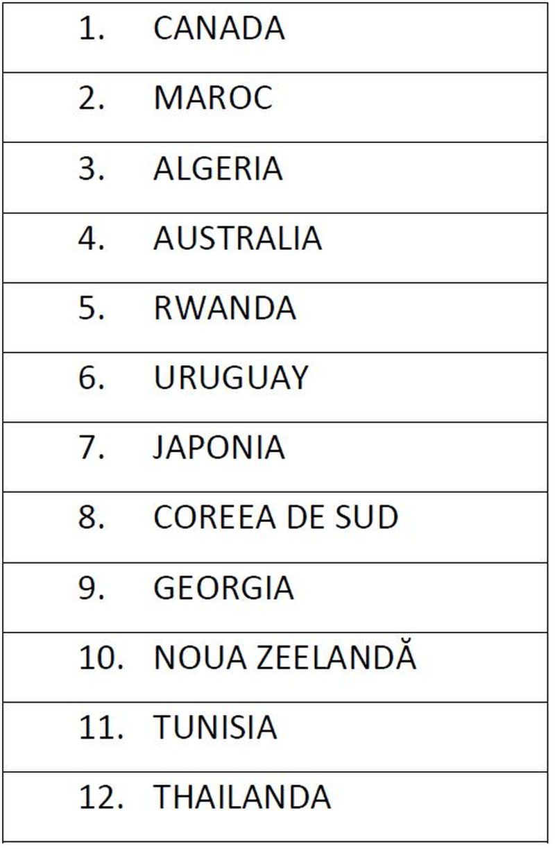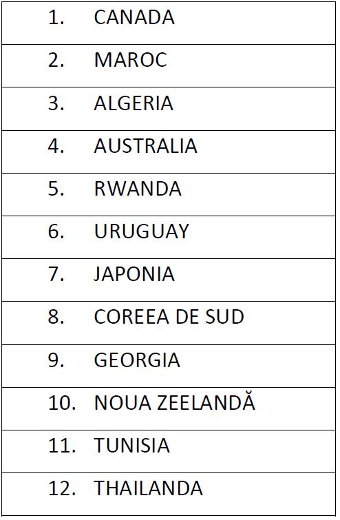 Lista țărilor terțe pentru care nu se recomandă intrarea în izolare/carantină a persoanelor care sosesc în România: