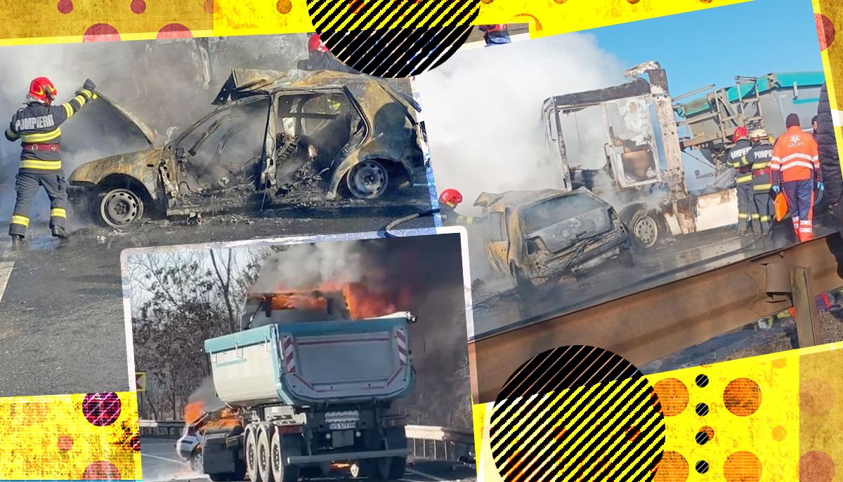 Marți dimineață, un autoturism și un camion au luat foc, în urma unui accident produs pe DN24, în localitatea Berheci din județul Galați.