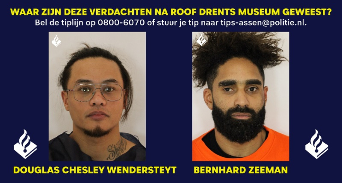 Poliția din Olanda a publicat fotografiile a doi dintre suspecții arestați pentru jaful de la muzeul Drents din Assen, de unde au dispărut Coiful de la Coțofenești și brățările dacice de aur. Valorile de patrimoniu sunt de negăsit.