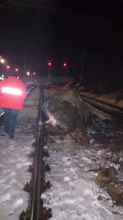 2 din 3 | Circulatia feroviara a fost oprita pe o ruta din Banat, dupa ce mai multe stanci au cazut pe calea ferata