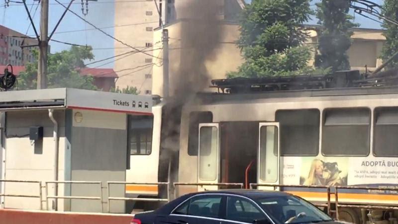 3 din 4 | Circulația întreruptă în Capitală! Un tramvai, plin cu călători, a luat foc