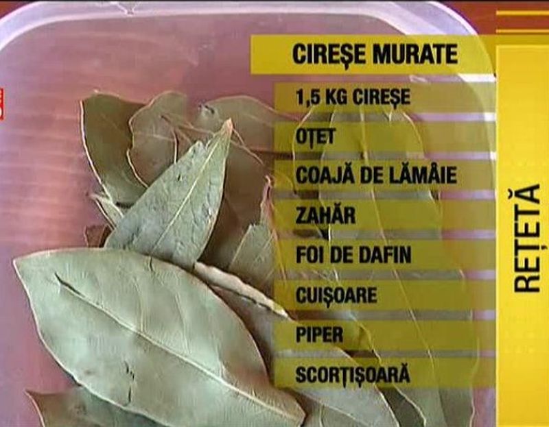 Reteta ne-o spune cântareata, de muzica populara, din Banat... Carmen Ienci. "Dragii mei, a venit vara. Fructele mele preferate sunt ciresele si m-am gandit sa imi pun si la borcan, la murat. Vreau sa am si la toamna, si la iarna.", ne spune ea.