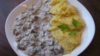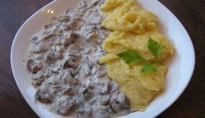 Servim ciulamaua de ciuperci, cu mămăliguță caldă.