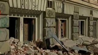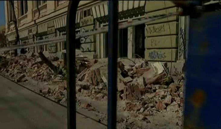 Cladirile in paragina, gata sa se prabuseasca peste trecatori sunt reabilitate cu politia locala? Nici vorba. Altul este secretul prezentei oamenilor legii. Autoritatile incearca sa-i opreasca pe pietoni sa se puna in pericol. Dar, oamenii n-au pe unde sa treaca, asa ca masura este inutila!