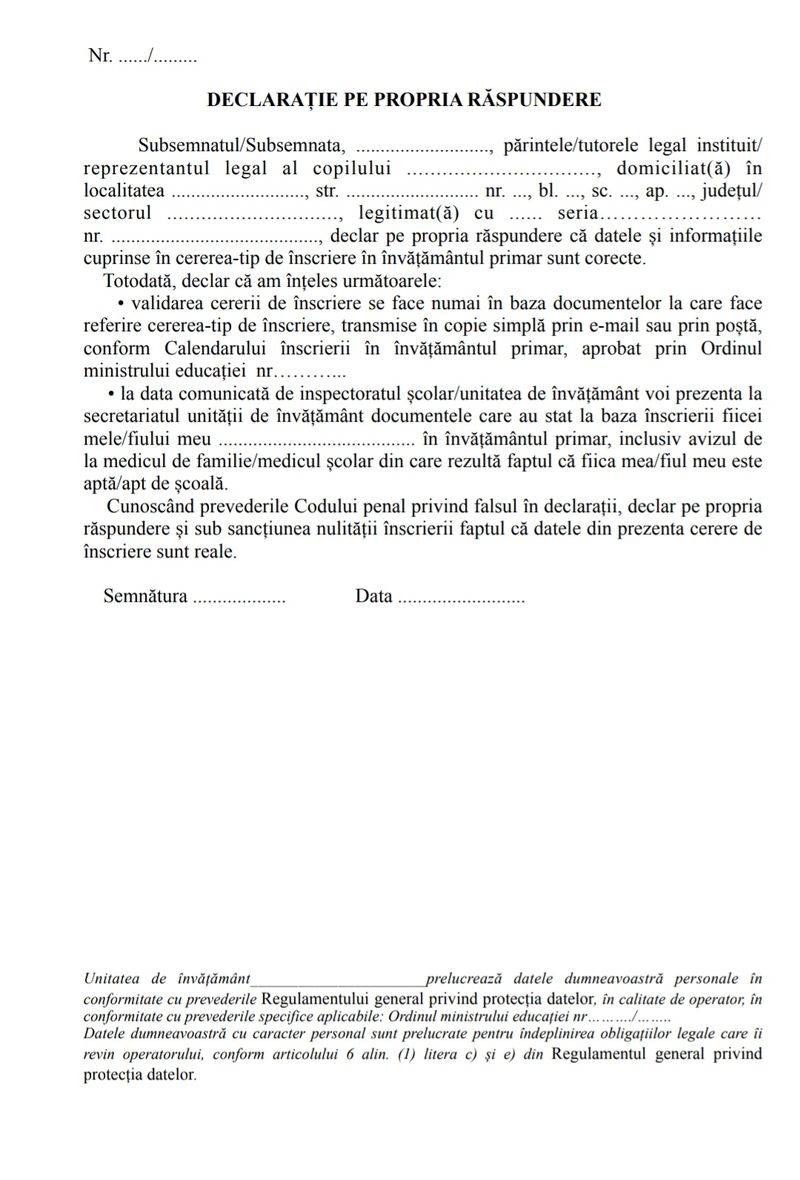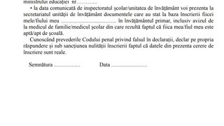 Pentru inscrierea copiilor la scoala este necesara cererea-tip care se completeaza online sau la secretariatul scolii la care parintele doreste sa-si inscrie copilul.