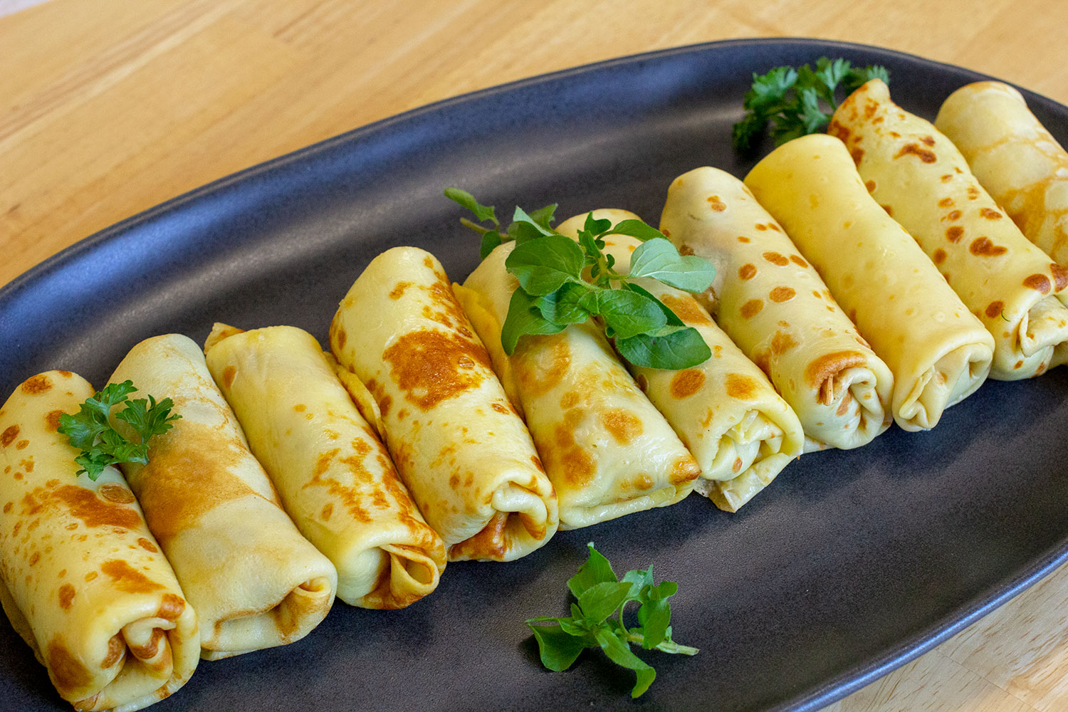Prăjim apoi clătitele până se rumenesc pe ambele părti (dacă folosiţi o tigaie de teflon nu e nevoie de ulei la prăjit). Le scoatem şi cât sunt fierbinţi, le umplem cu caşcaval ras şi le rulăm sau le împăturim în patru.