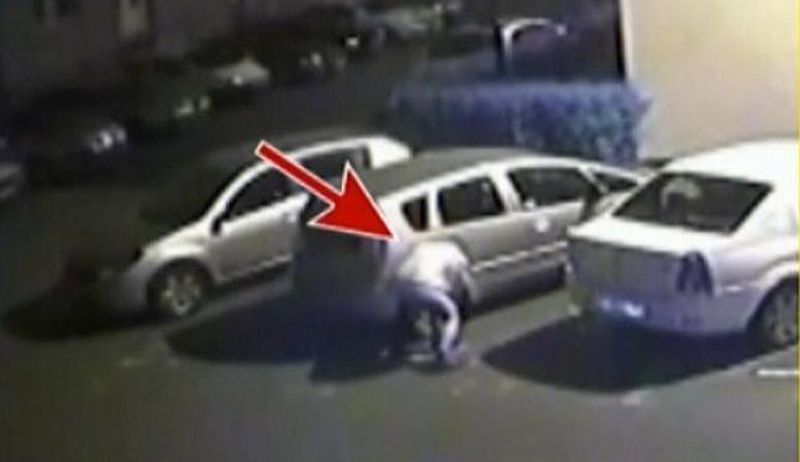 Individul, un barbat ce pare trecut de 40 de ani, tine un cutit in mana. E in parcarea unui bloc, iar pe langa el trec mai multi oameni. Minute bune se plimba, inarmat, pe langa masinile parcate.