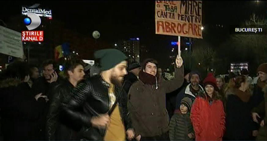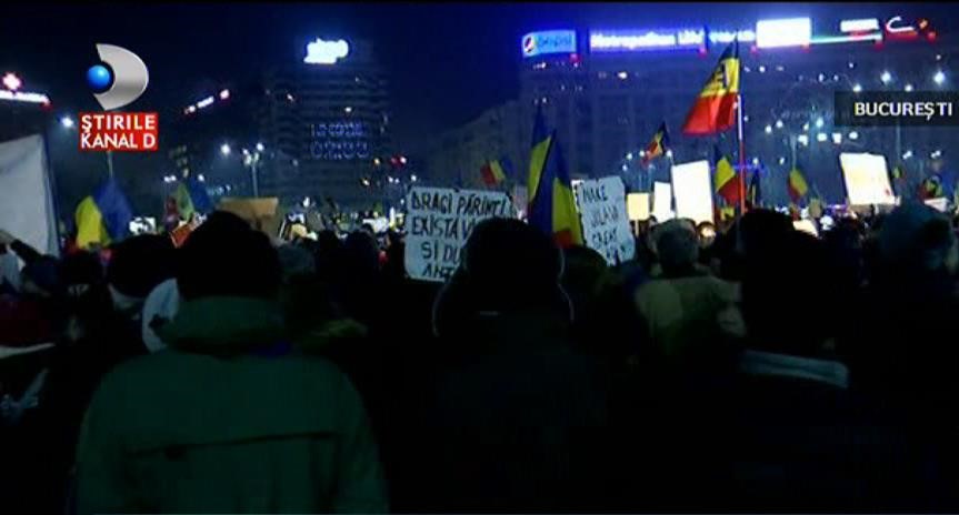 Nici aseara creativitatea n-a avut limite. Unii au adus catuse si hartie igienica, altii ne-au aratat ce prins pisica in piata. Iar mesajele de pe pancarte au devenit virale. "M-ati aprins mai tare decat nevasta-mea!" a scris acest tanar pe bannerul pe care l-a fluturat in multime.