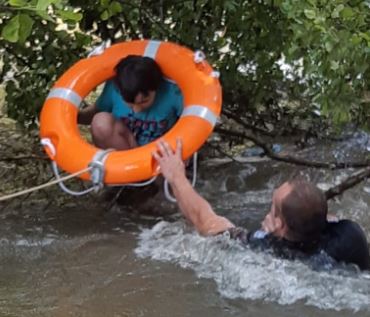 Garda de intervenție Sebeș a intervenit cu o autospecială și o ambulanță SMURD pentru salvarea a doi minori în vârstă de 11 ani(băiat) și 13 ani (fată) care se aflau la joaca pe malul Râului Sebeș.