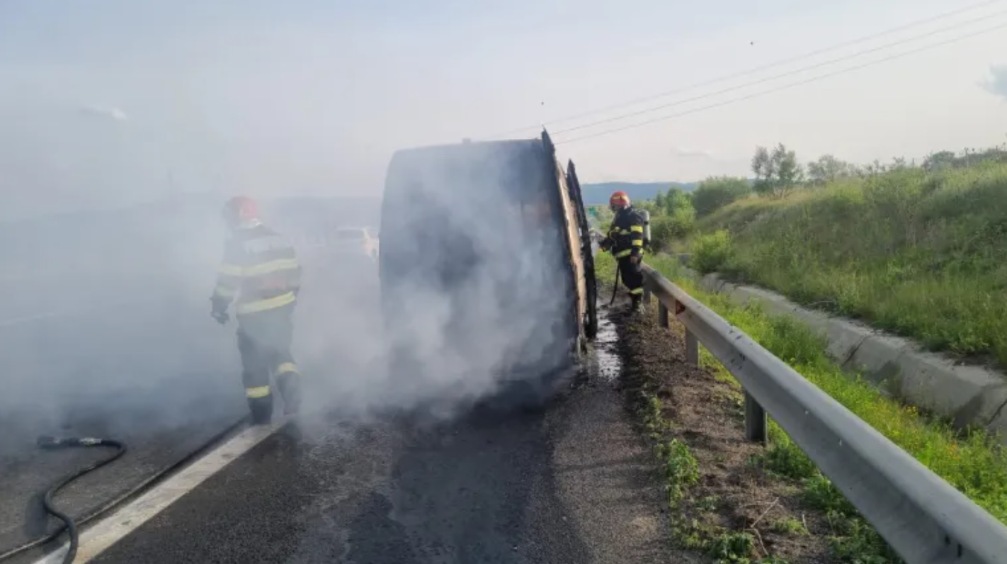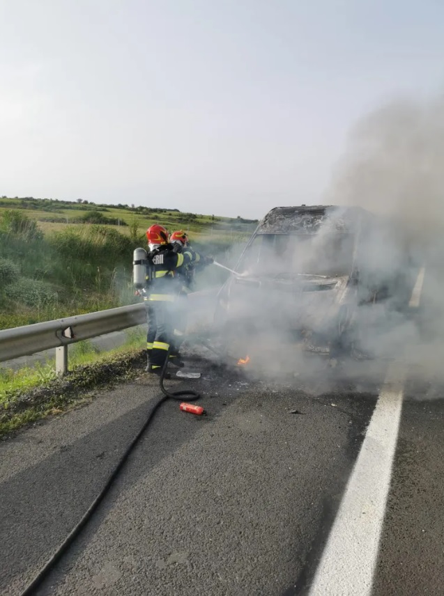 În microbuz se aflau 8 pasageri şi şoferul, care s-au autoevacuat, neavând nevoie de îngrijiri medicale. S-a acţionat pentru localizarea şi lichidarea incendiului care a fost cauzat de un scurtcircuit de la compartimentul motor şi a afectat în totalitate microbuzul”, a transmis, duminică, ISU Sibiu.