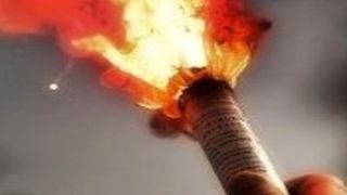 4 din 4 | Clipe de teroare pentru o jurnalistă. A fost arsă de o torță la meci