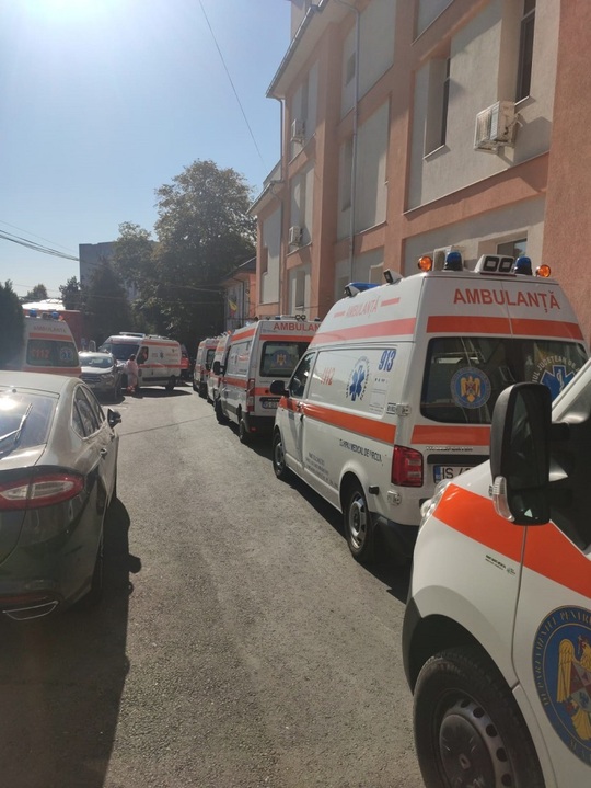 Este coadă de ambulanţe la spitalul de Boli Infecţioase din Iaşi. Managerul Florin Roşu a declarat că bolnavii sunt tratați în ambulanțe.