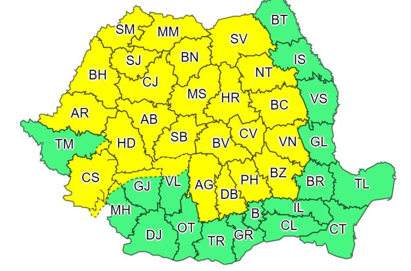 Meteorologii de la ANM au emis un nou cod galben, valabil pentru jumătatea de vest a țării. Intervalul de valabilitate: 27 iulie, ora 10:00 – 27 iulie, ora 23:00. Fenomene vizate: instabilitate atmosferică temporar accentuată.