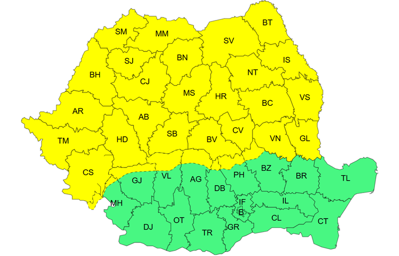 Administrația Națională de Meteorologie a emis un cod galben de ninsoare, intensificări ale vântului și ger, care a intrat în vigoare de pe 6 ianuarie și este valabil până pe 9 ianuarie, la ora 10:00.