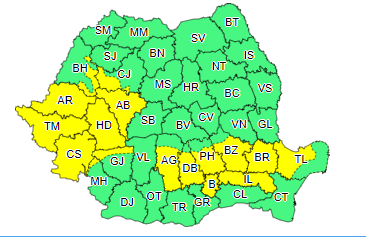 Cod galben de polei în Bucureşti şi în opt judeţe.