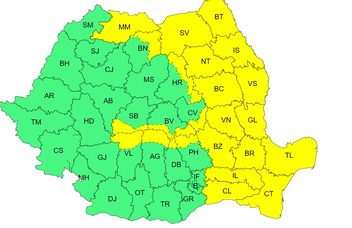 ANM a emis mai multe avertizări de tip cod galben pentru următoarele ore și zile. Vizează aproape jumătate din țară!