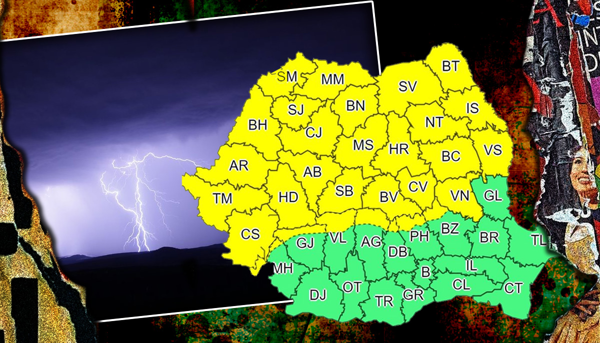 Mai mult de jumătate din țară se află sub avertizare COD GALBEN de ploi torențiale, vijelii și căderi de grindină. Avertizarea ANM este valabilă până luni dimineața, la ora 06.00.