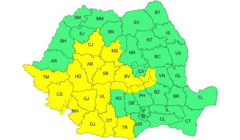Meteorologii eu emis mai multe avertizări cod galben valabile de pe 23 februarie până pe 25 februarie.