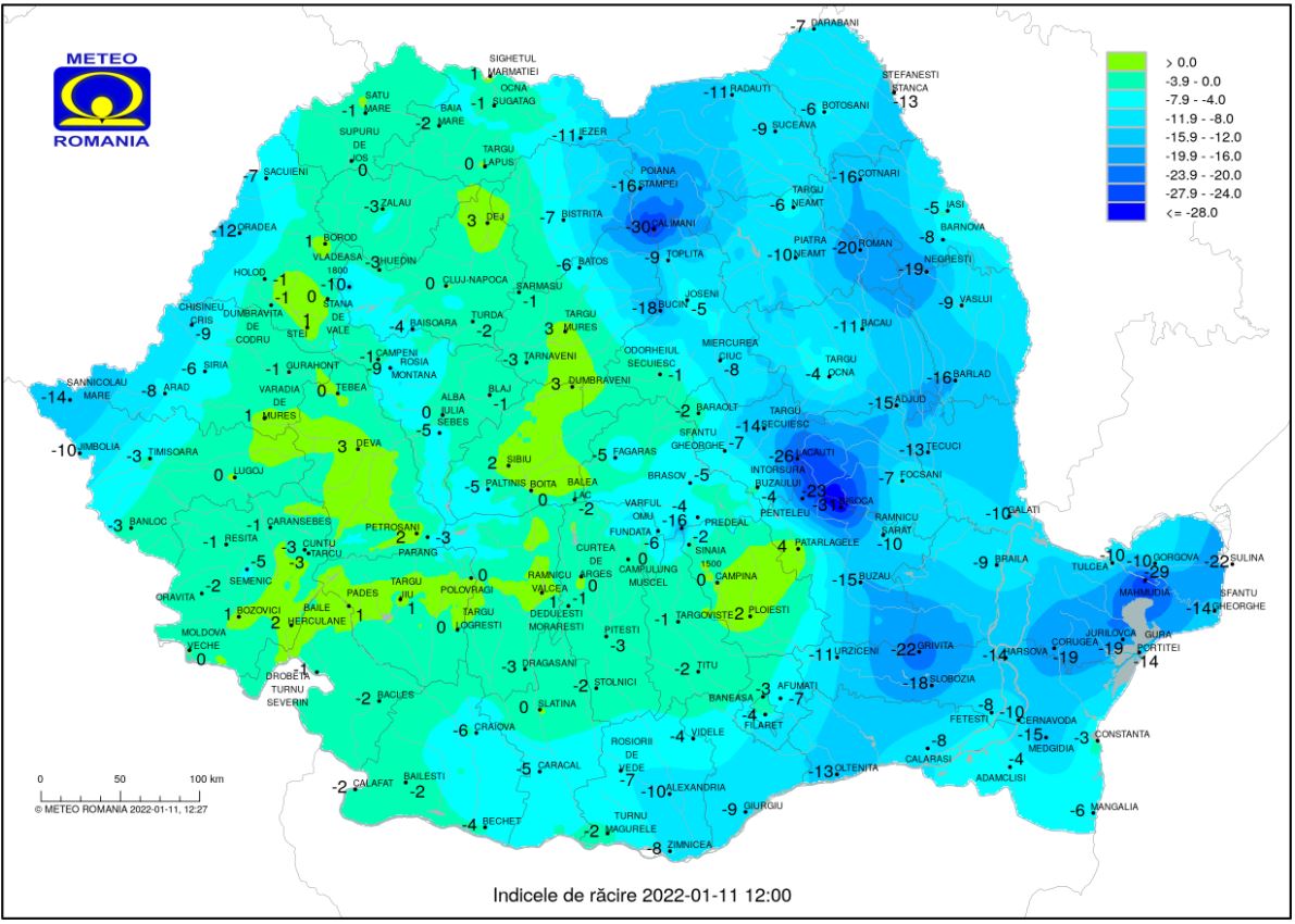 ”Vremea va deveni deosebit de rece, geroasă noaptea şi dimineaţa, la început în nord-vest şi centru, unde minimele vor fi de -15...-10 grade, iar miercuri spre joi (12/13 ianuarie) în cea mai mare parte a ţării, astfel că valorile minime se vor situa, în general, între -18 şi -8 grade. Temperaturile maxime vor fi preponderent negative”, a transmis, marţi, ANM.