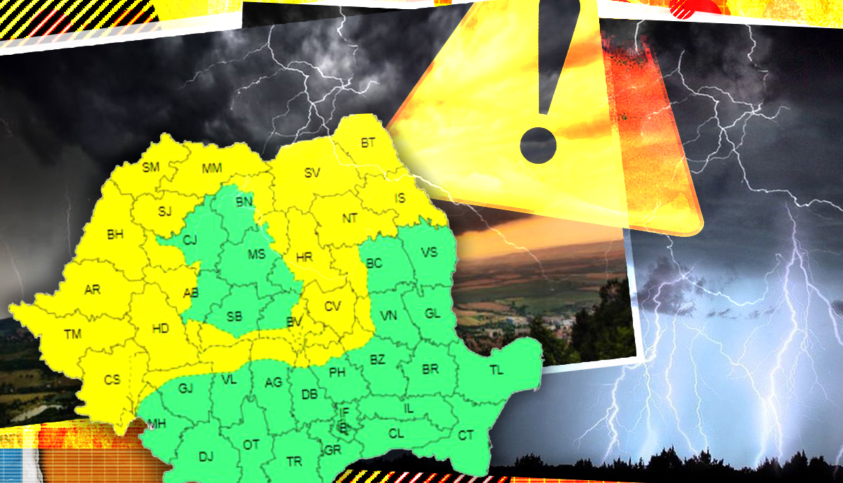 Administrația Națională de Meteorologie a emis un cod galben de instabilitate atmosferică, caracterizată de furtuni și vijelii, pentru mai multe regiuni din România. Care sunt zonele afectate?