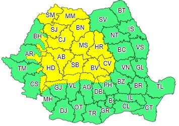Codul galben va fi valabil în intervalul 13.00-21.00.
