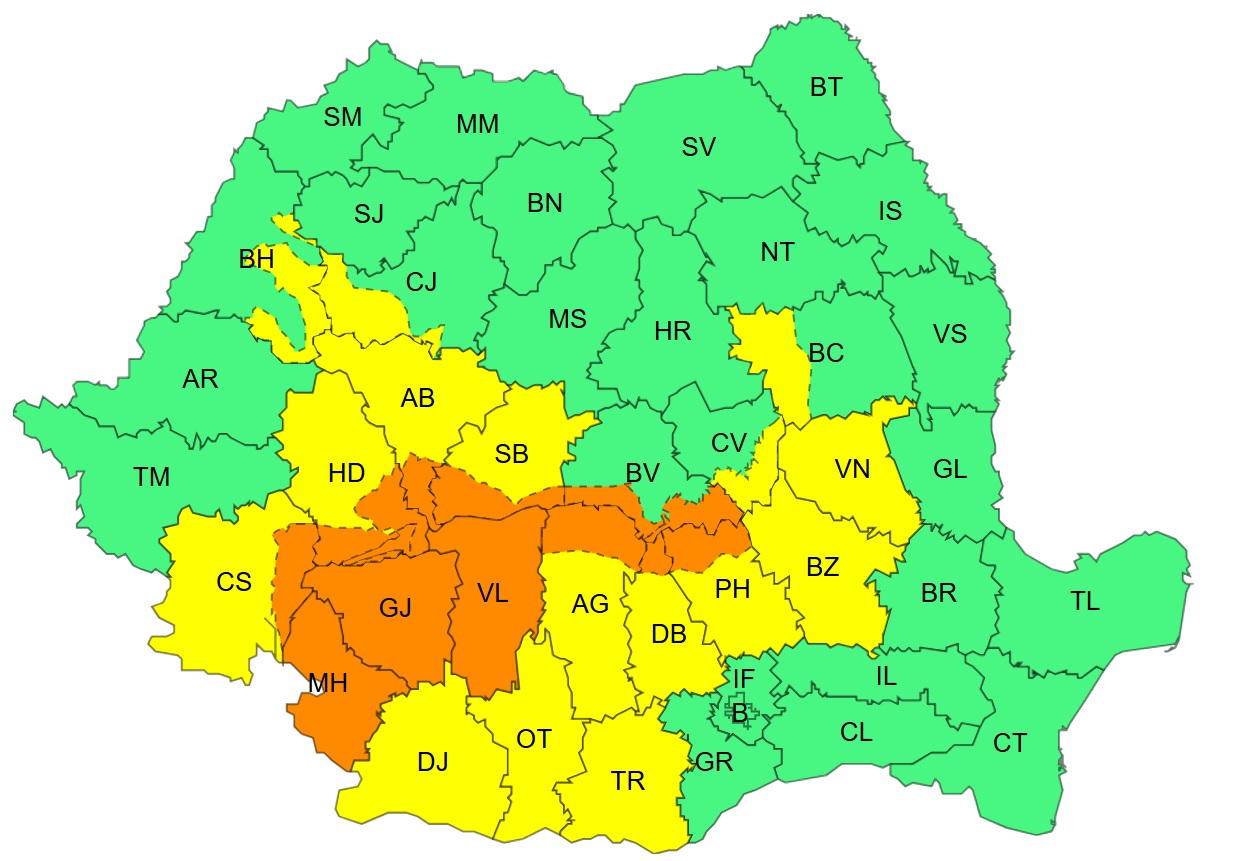 În intervalul menționat, în județele Mehedinți, Gorj și Vâlcea și în zona de munte a județelor Caraș-Severin, Hunedoara, Alba, Sibiu, Brașov, Argeș, Dâmbovița și Prahova va ploua abundent.