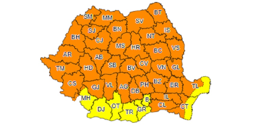 ”În după-amiaza zilei de duminică (14 iunie) şi în prima parte a nopţii de duminică spre luni (14/15 iunie), în Banat, Crişana, Transilvania, Maramureş, Moldova şi local în Muntenia, Dobrogea şi Oltenia vor fi perioade cu averse torenţiale şi se vor acumula cantităţi de apă de peste 40 l/mp